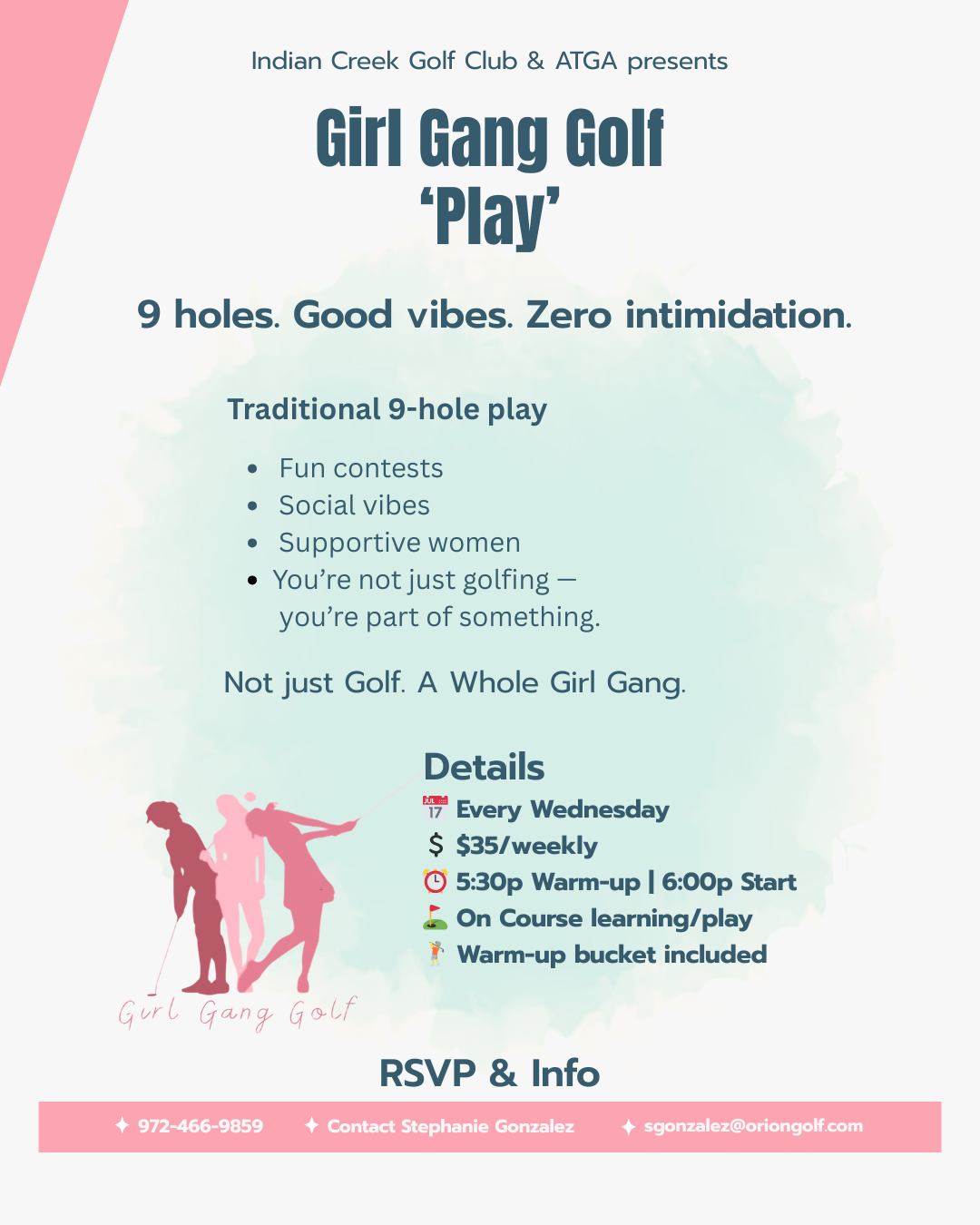 GGG 36 Club: Progressive Play | Every Wednesday at 5:30pm | $35+ tax includes green fee, car fee, and warm-up bucket | Op36 Teaching Framework | For player who have completed beginner lessons | Intro to on-course play from shorter yardages | Build confidence, learn course etiquette, improve scoring | Instruction from Director of Instruction - Angella Then